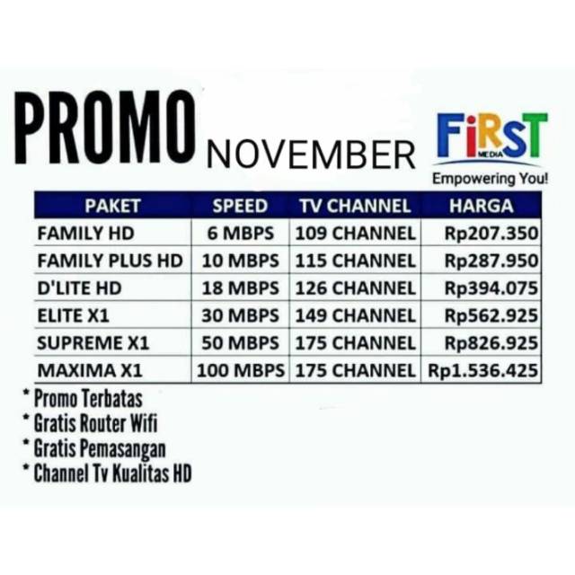 Harga Pasang Wifi First Media